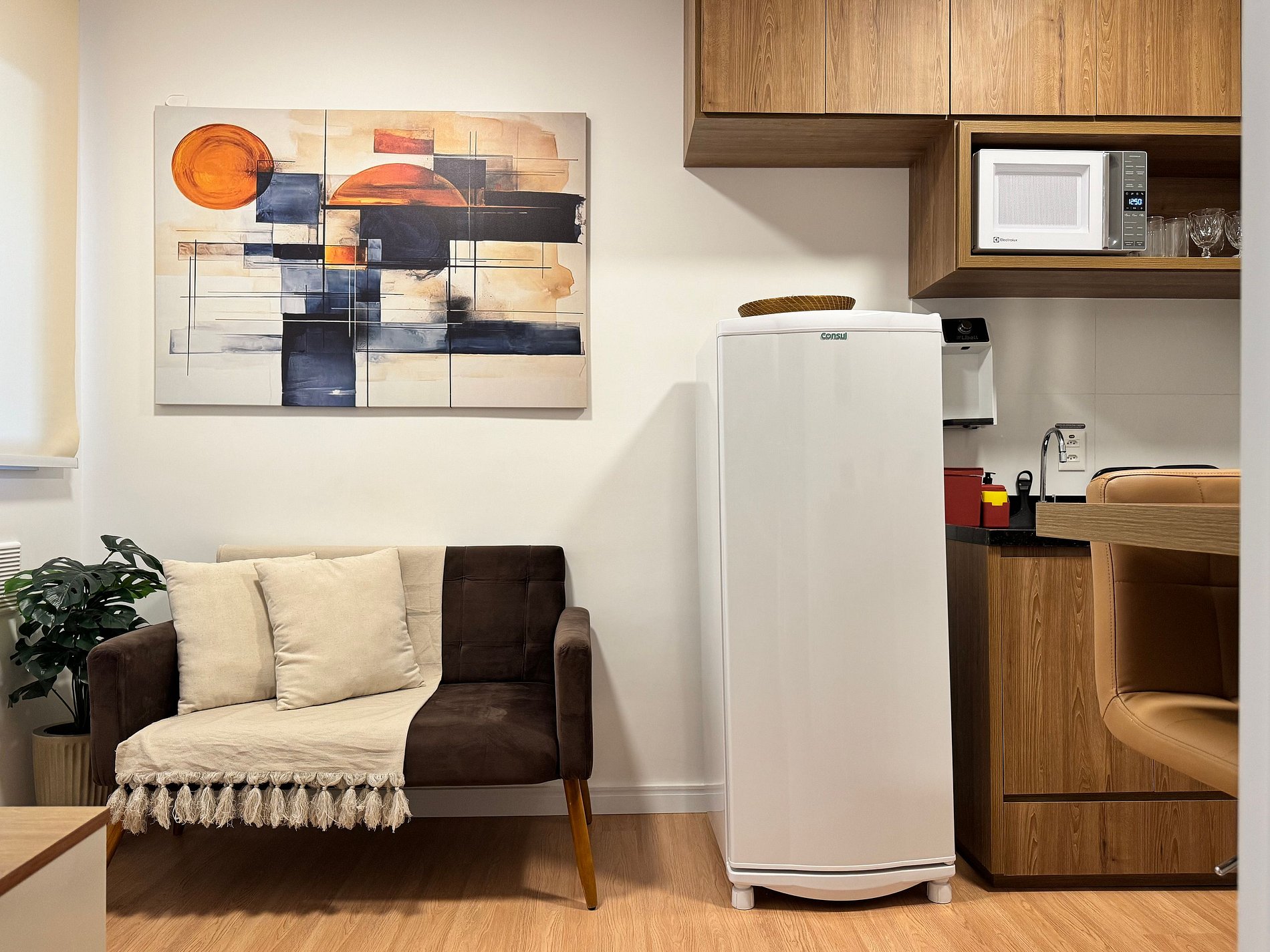 Área de estar com sofá/cadeira