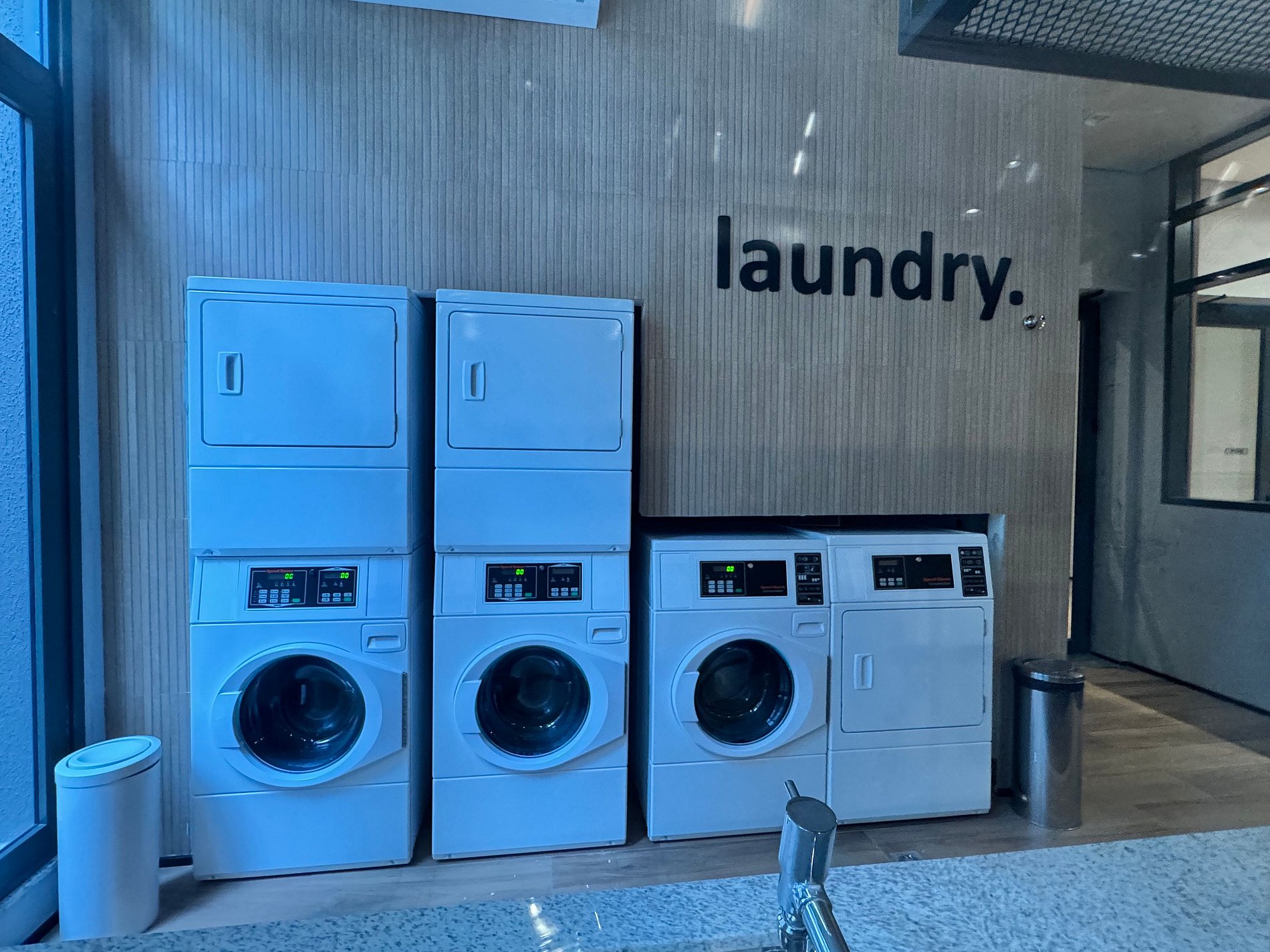 - Einer praktischen, modernen Gemeinschaftswäscherei mit industriellen Waschmaschinen und Trocknern;
