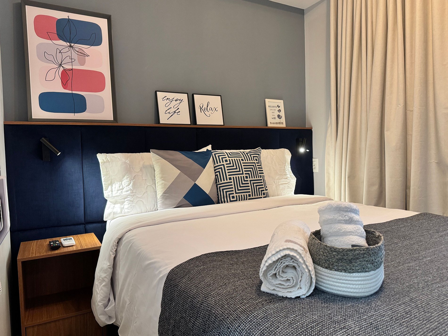 Cada detalle del Studio 201 ha sido cuidadosamente pensado para brindar bienestar, funcionalidad y practicidad. El espacio ofrece cama box confortable, ropa de cama premium, aire acondicionado frío/calor, Smart TV de 40” con Prime Video, cortinas blackout, iluminación suave y decoración moderna con tonos neutros y un estilo acogedor.