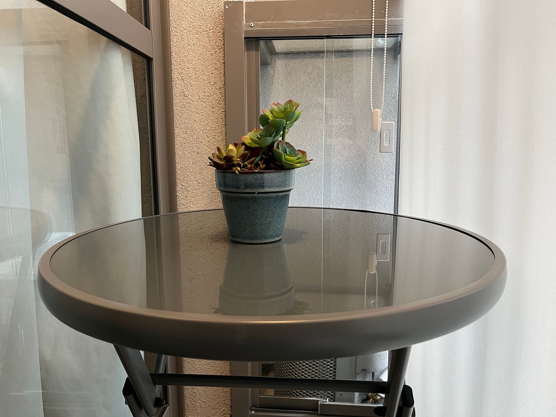 Mesa y sillas plegables en el balcón