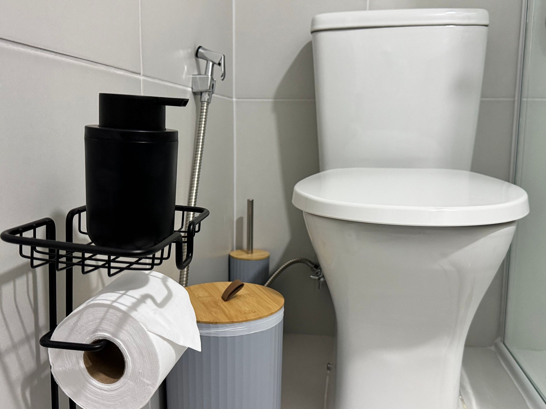 En el baño hay bolsas para residuos orgánicos. La papelera junto al escritorio del home office está forrada con una bolsa de plástico negra, donde también se puede desechar la basura orgánica de la cocina.