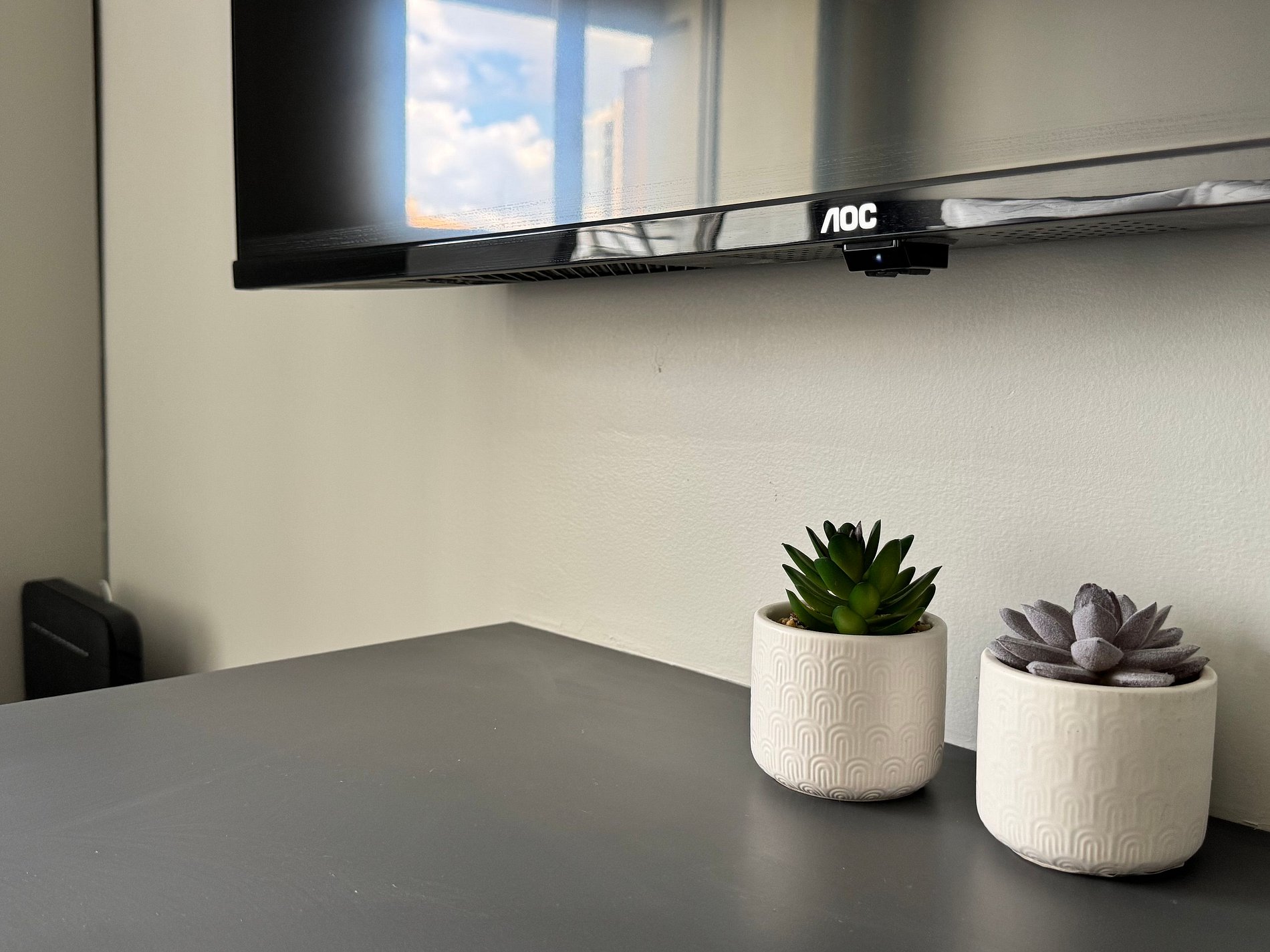 El Estudio 1103 es completamente nuevo, acogedor y bien diseñado. La cama cómoda y la ropa de cama de alta calidad garantizan noches de descanso reparador. El Wi-Fi de alta velocidad y la Smart TV ofrecen entretenimiento y productividad sin interrupciones. La cocina compacta y equipada brinda toda la comodidad necesaria para preparar comidas rápidas o incluso una cena especial. El espacio ha sido optimizado para proporcionar un área funcional de oficina en casa, perfecta para el trabajo remoto.