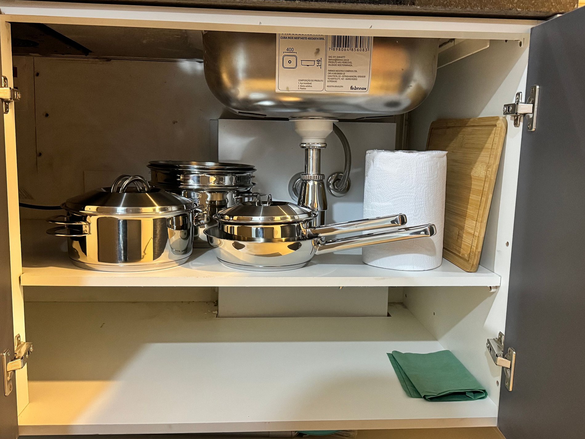 En el baño hay bolsas para residuos orgánicos. La papelera junto al escritorio del home office está forrada con una bolsa de plástico negra, donde también se puede desechar la basura orgánica de la cocina.