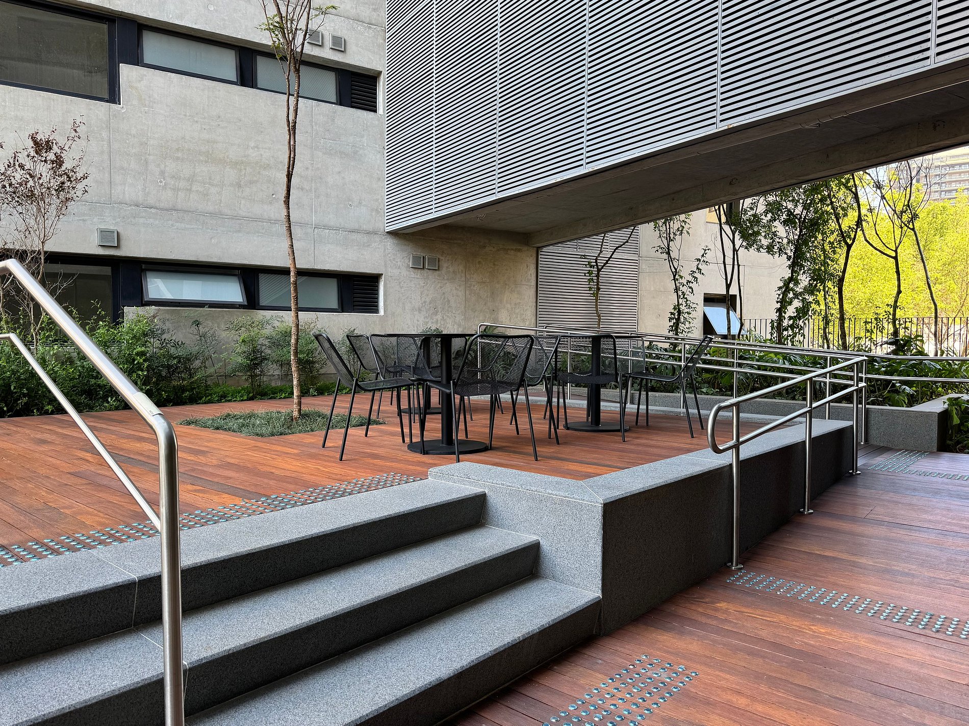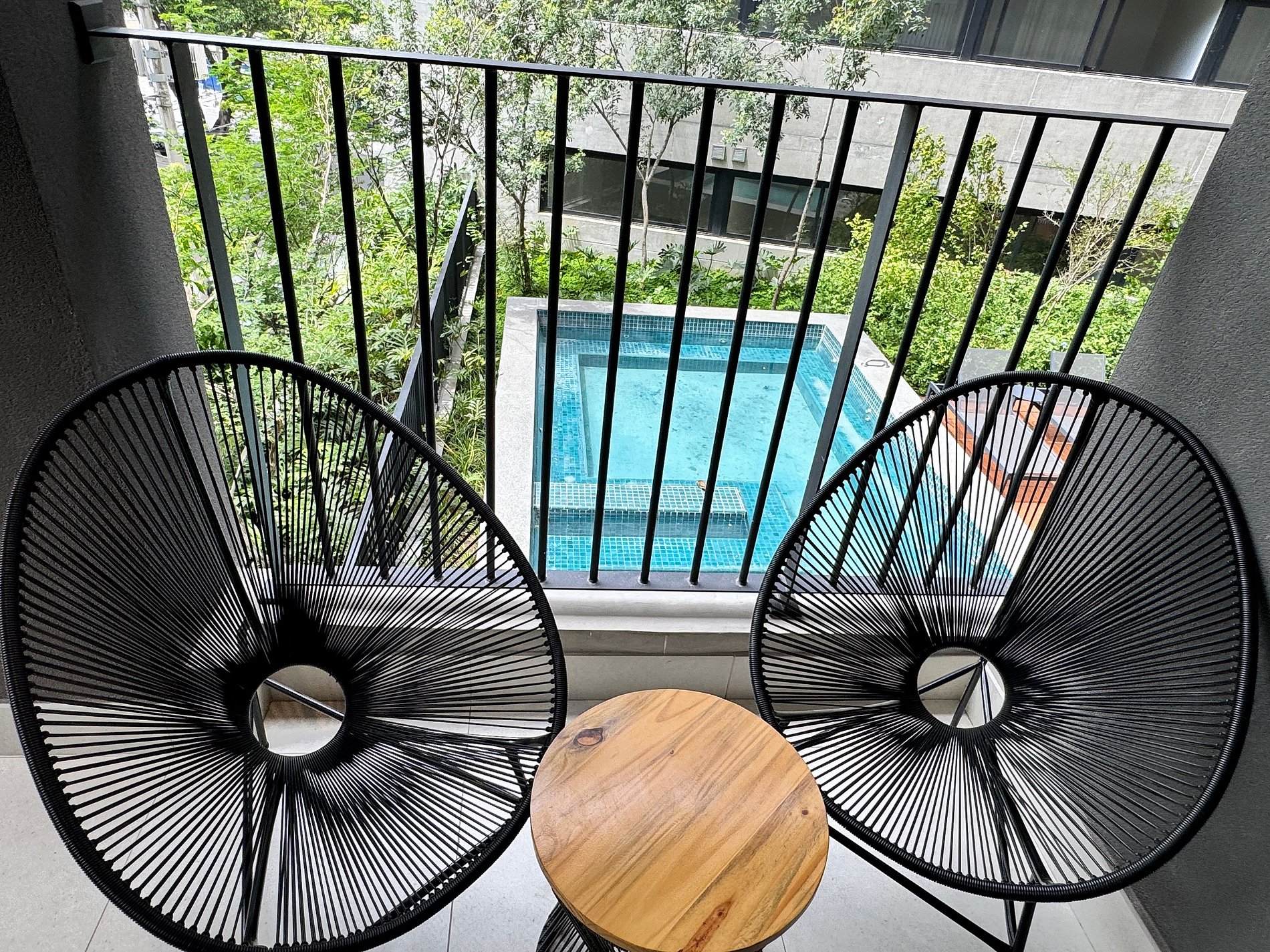 Les clients peuvent se détendre dans la piscine extérieure avec terrasse en bois et chaises longues, idéale pour profiter d’un moment de repos au cœur de la ville. Pour rester actif, une salle de sport compacte mais bien équipée avec des appareils modernes est à disposition. La buanderie commune ajoute une touche de praticité, facilitant le quotidien sans perdre en confort.