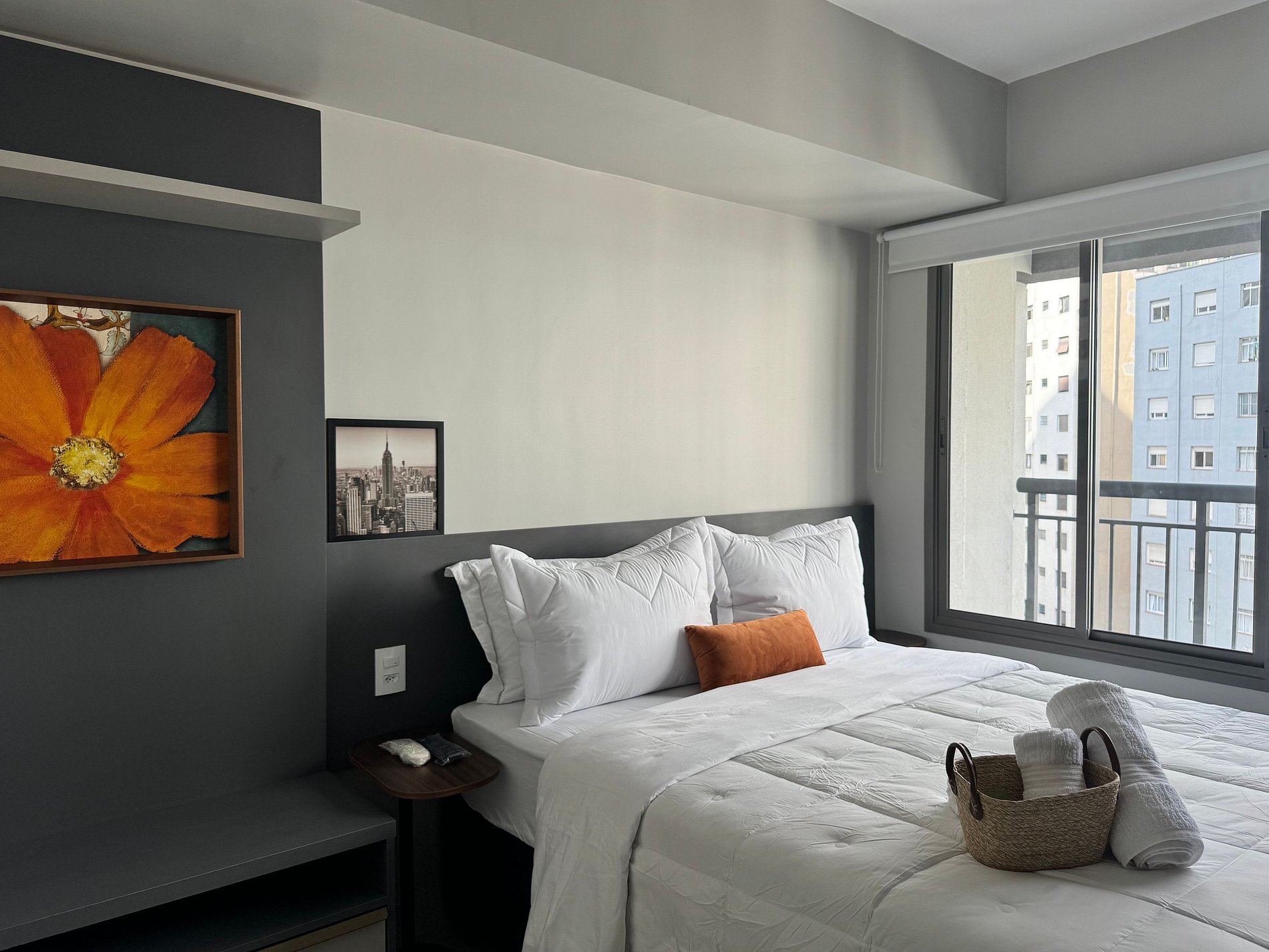 Studio 1103 ID Paraíso : design moderne, confort premium et emplacement idéal à 700m du Métro Paraíso et du Parc Aclimação. Infrastructure complète avec salle de sport, piscine couverte, sauna, espace coworking, laverie, salon de beauté et sécurité 24h. Idéal affaires, tourisme ou loisirs. Réservez dès maintenant et vivez São Paulo avec sophistication et confort !