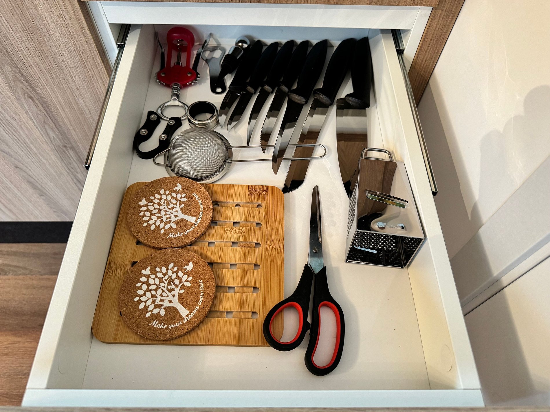 Nella cucina è disponibile un sacco di plastica verde nel cassetto per la raccolta dei materiali riciclabili come carta, plastica, metallo e vetro.