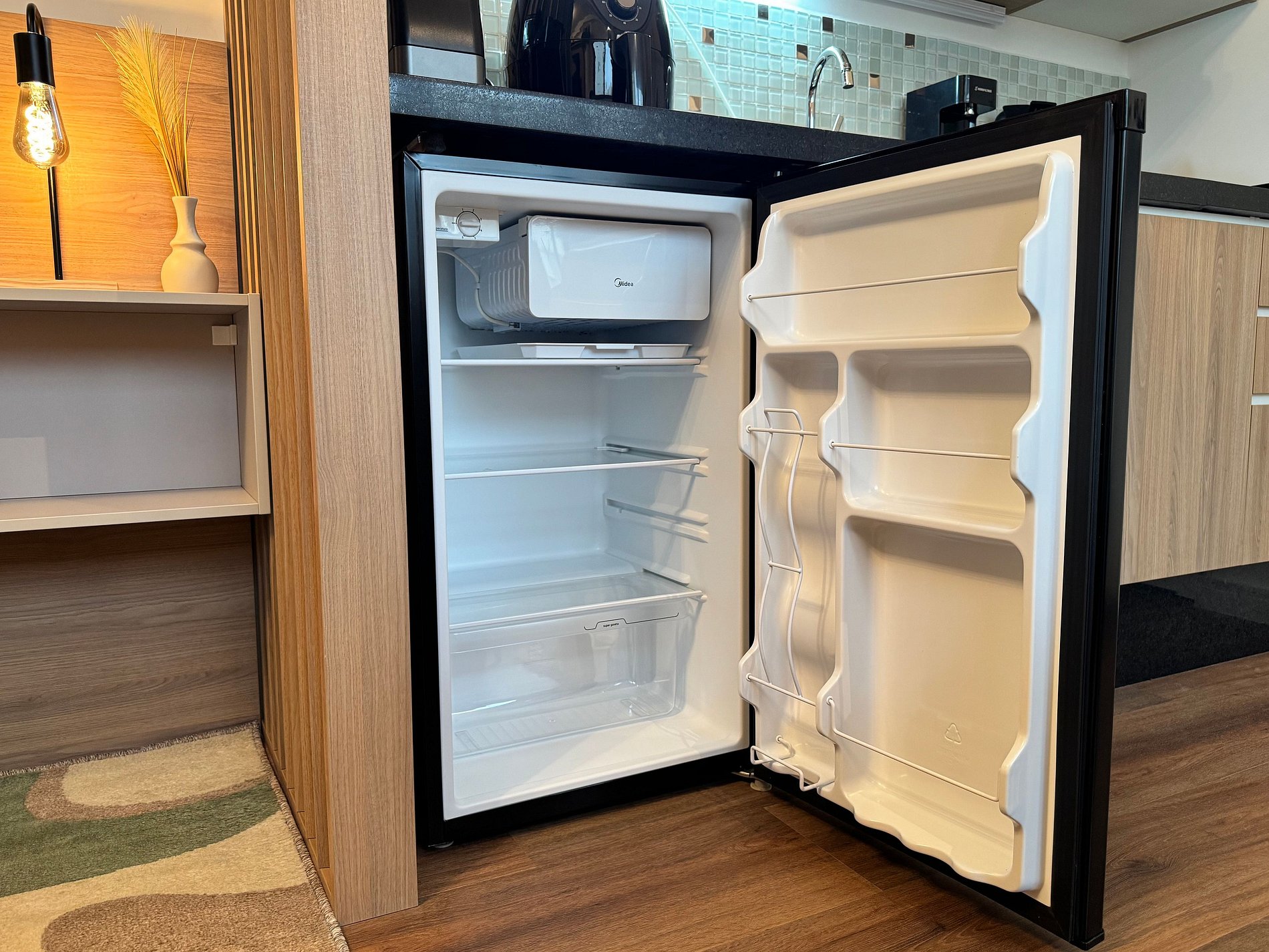 La cucina è completa e ideale per preparare pasti durante il soggiorno. L’aria condizionata caldo/freddo garantisce comfort tutto l’anno, mentre Smart TV, Wi-Fi in fibra ad alta velocità e area di lavoro creano l’ambiente perfetto per rilassarsi o mantenere la produttività.