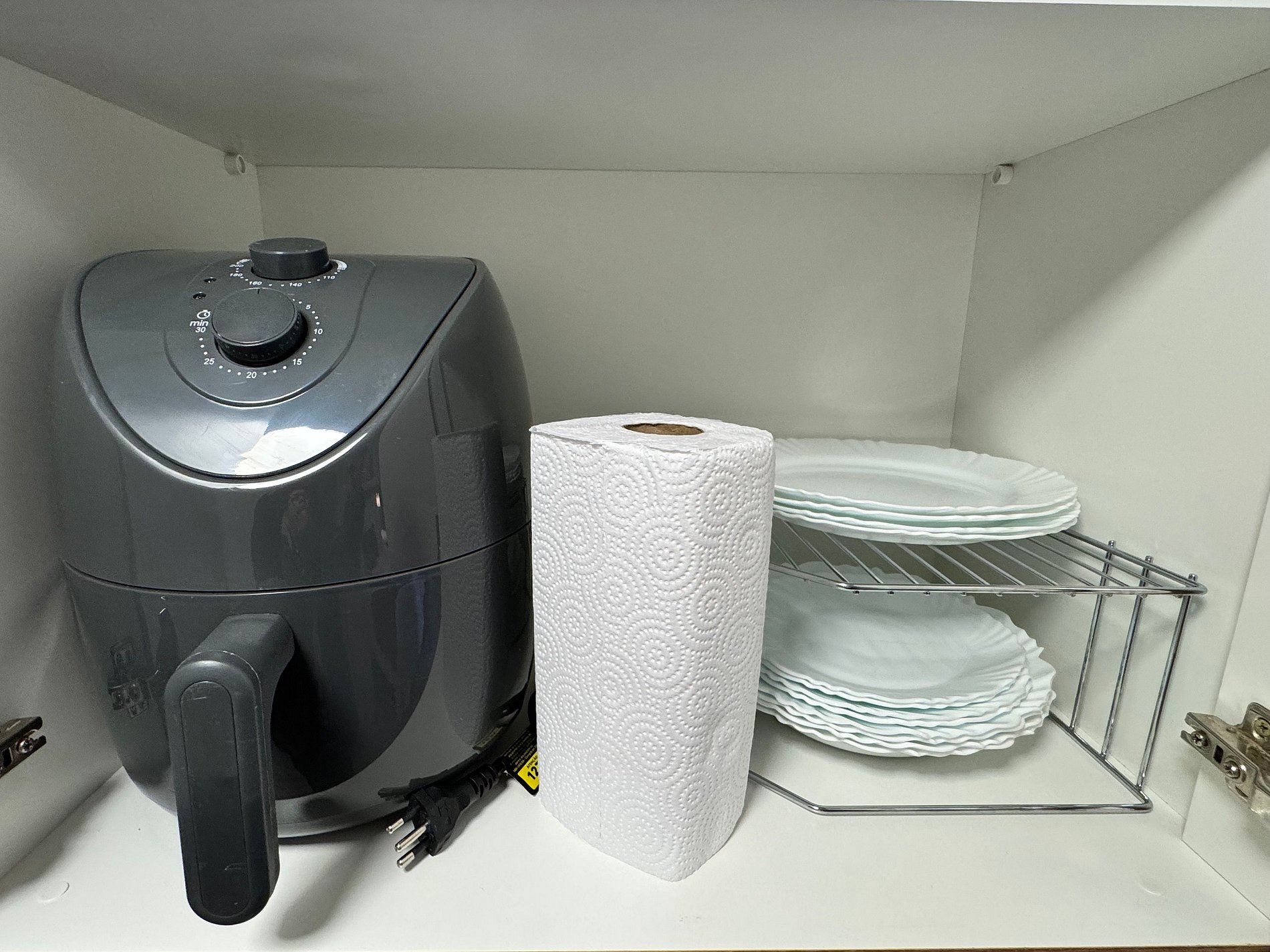 Nel bagno sono disponibili sacchetti per i rifiuti organici. Il cestino accanto alla scrivania dell’home office è rivestito con un sacco di plastica nero, dove possono essere smaltiti anche i rifiuti organici della cucina.