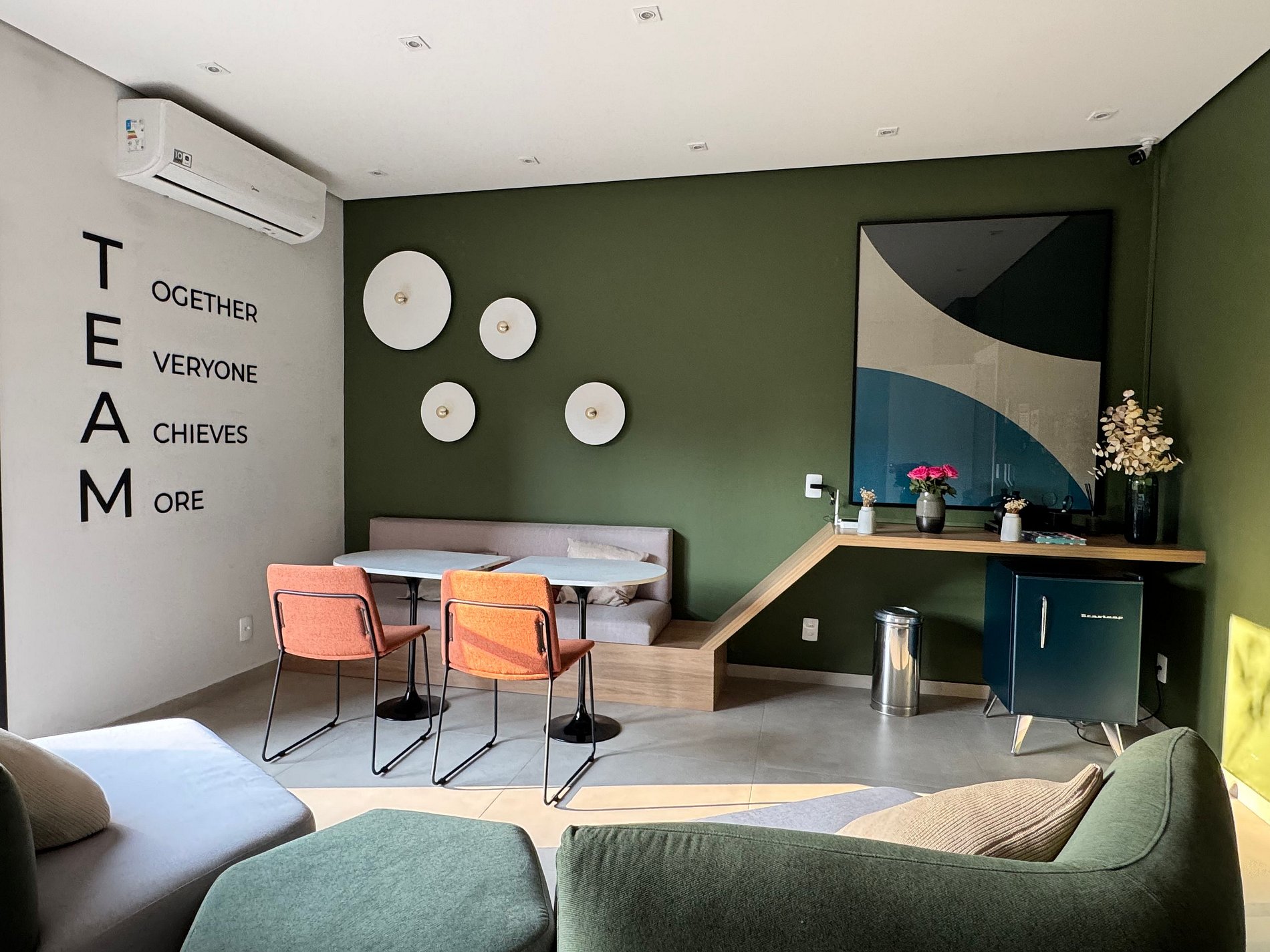 Área de estar com sofá/cadeira