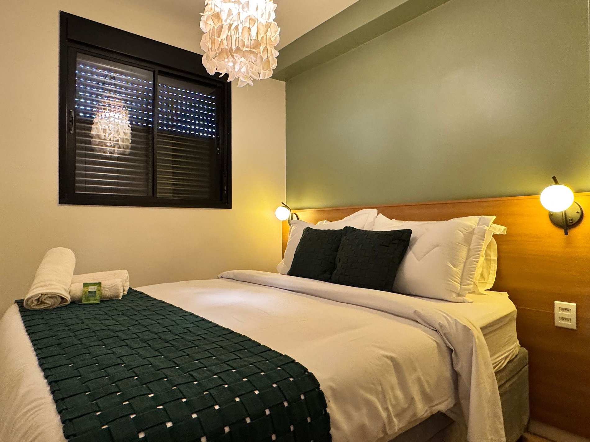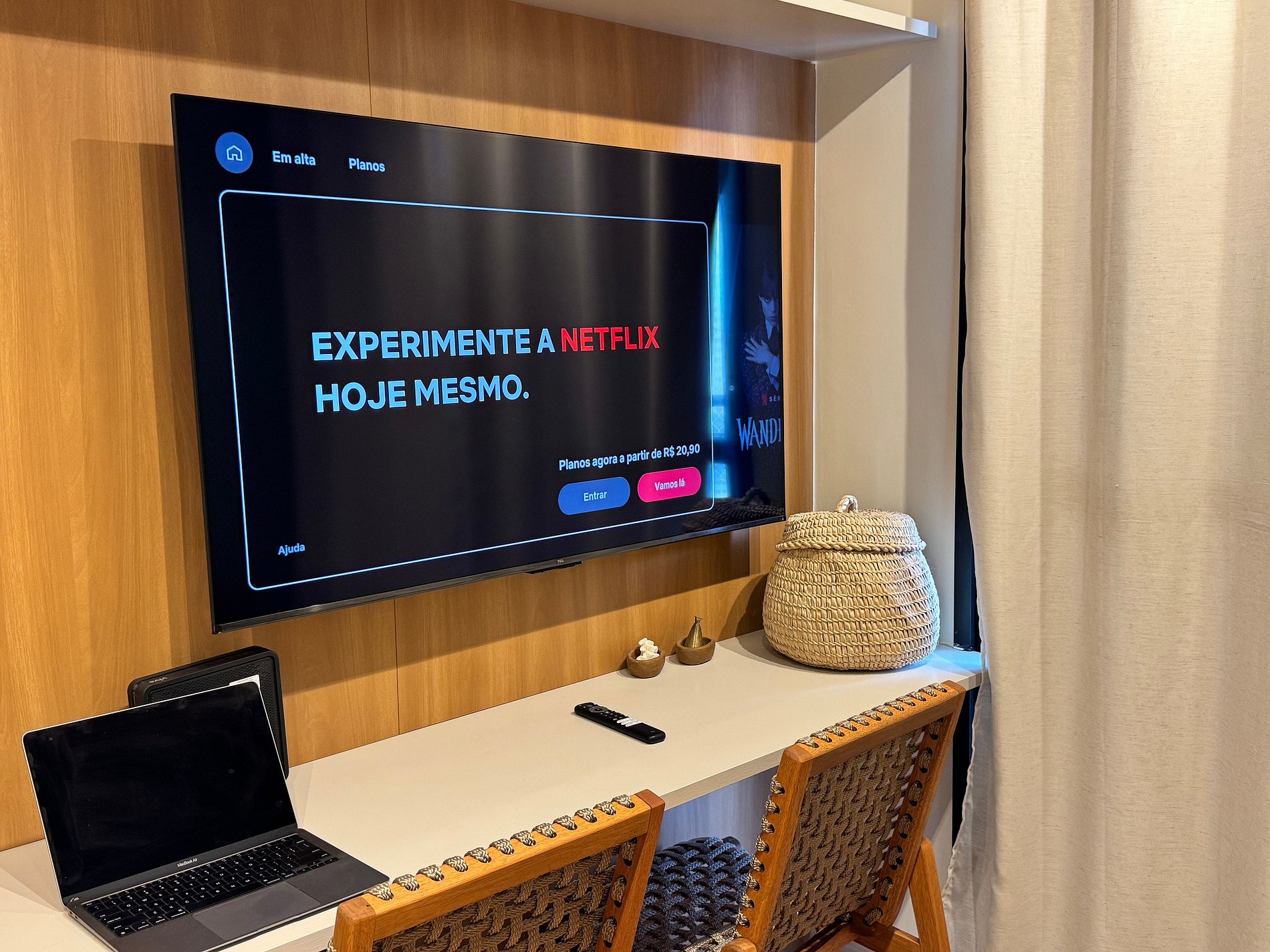 O apartamento conta com Wi-Fi rápido e estável, ideal para lazer ou home office. O dormitório oferece uma cama queen-size com enxoval macio e ar-condicionado para noites mais confortáveis. Na sala, a Smart TV garante entretenimento com acesso às principais plataformas de streaming (login do hóspede).