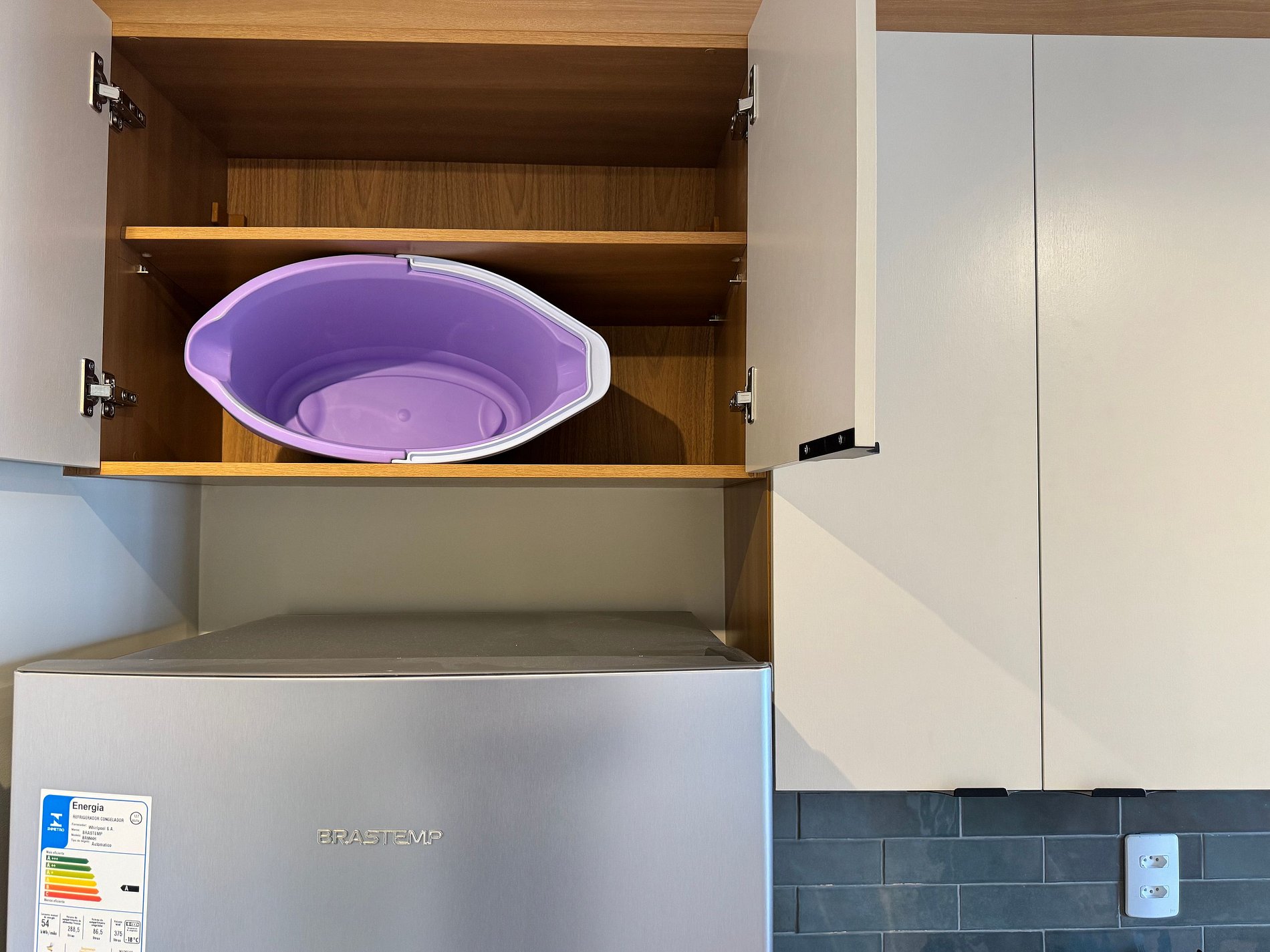 Disponibilizamos um saco plástico verde na gaveta da cozinha para o descarte de materiais recicáveis (papel, plástico, metal e vidro).