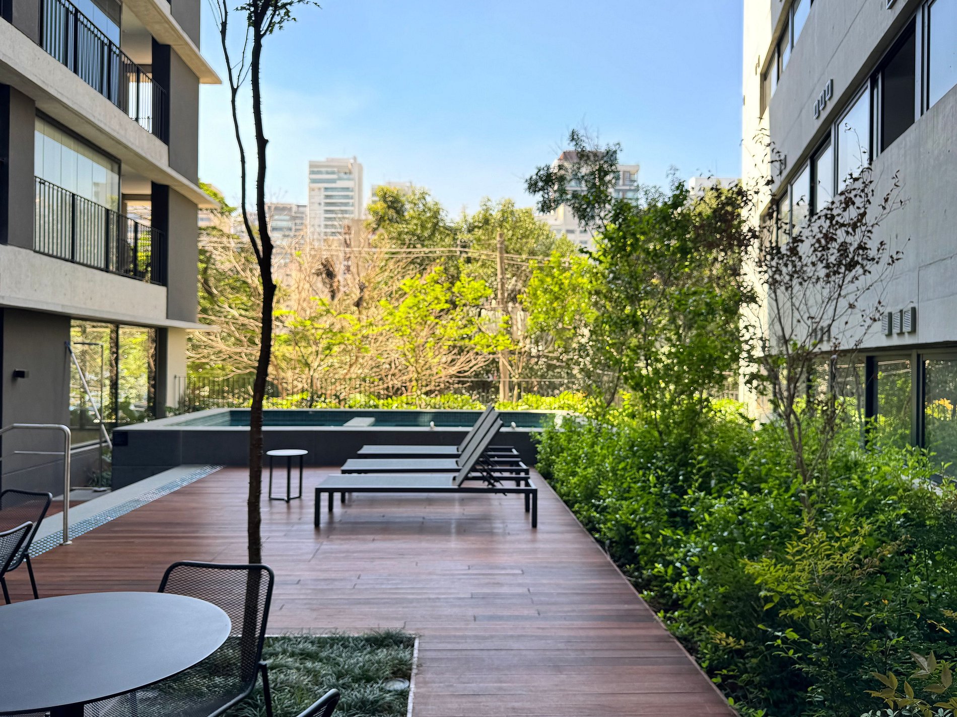Os hóspedes podem relaxar na piscina ao ar livre com deck de madeira e solário, perfeita para aproveitar momentos de descanso em meio ao cenário urbano. Para manter a rotina de exercícios, há uma academia compacta e bem equipada, com aparelhos modernos. A lavanderia compartilhada garante praticidade no dia a dia, facilitando a estadia sem abrir mão da conveniência.