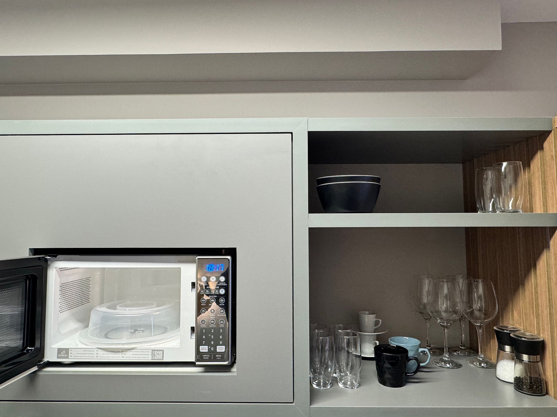 Disponibilizamos um saco plástico verde na gaveta da cozinha para o descarte de materiais recicáveis (papel, plástico, metal e vidro).
