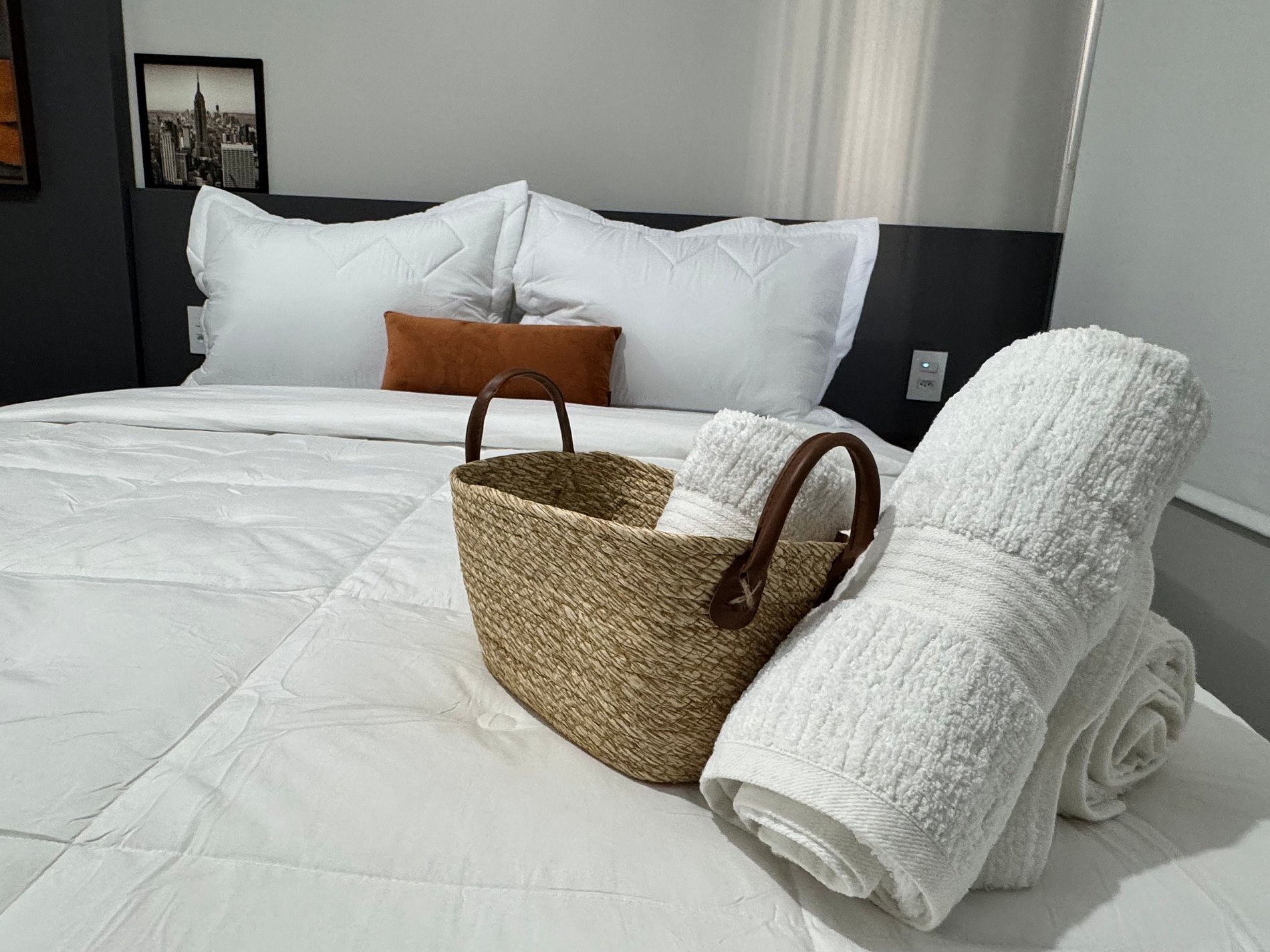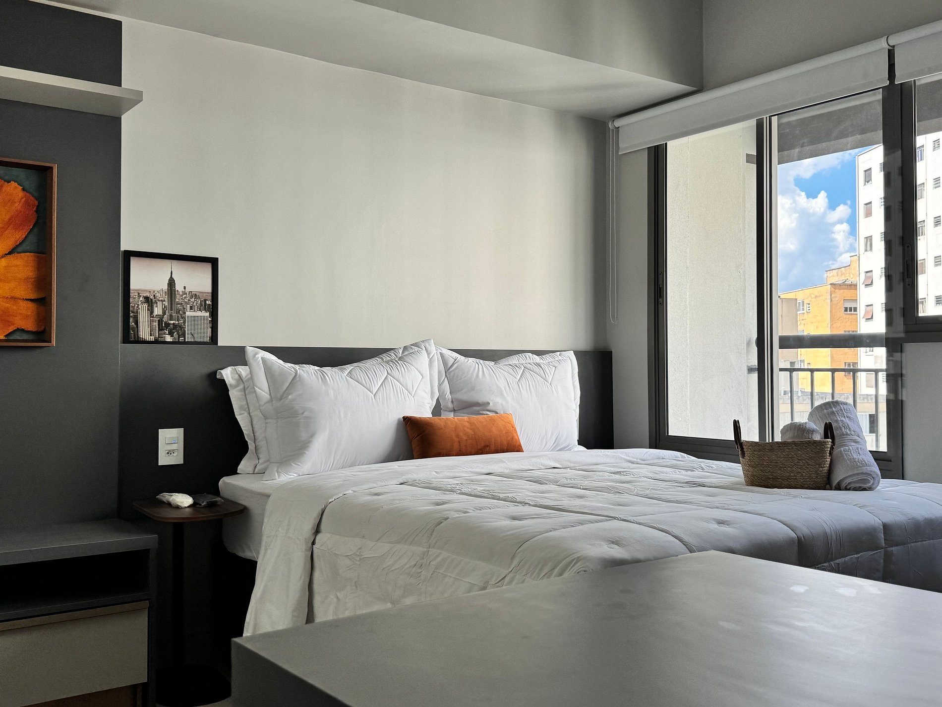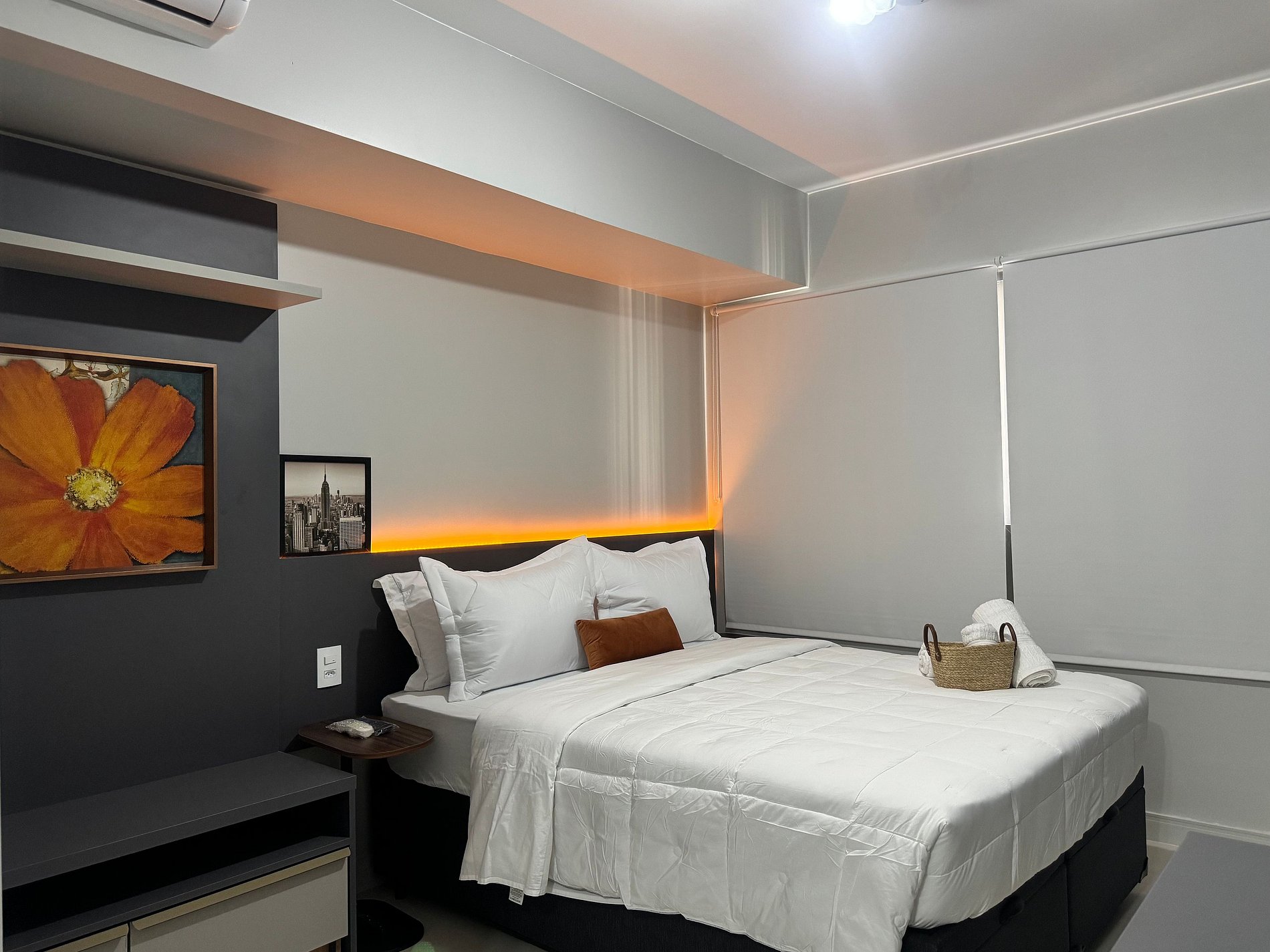 O Studio 1103 é totalmente novo, aconchegante e bem planejado. A cama confortável e o enxoval premium garantem noites de descanso revigorantes. O Wi-Fi de alta velocidade e a Smart TV permitem entretenimento e produtividade sem interrupções. A cozinha compacta e equipada oferece toda a praticidade para refeições rápidas ou até mesmo um jantar especial. O ambiente foi otimizado para oferecer um espaço funcional para home office, ideal para quem trabalha remotamente.