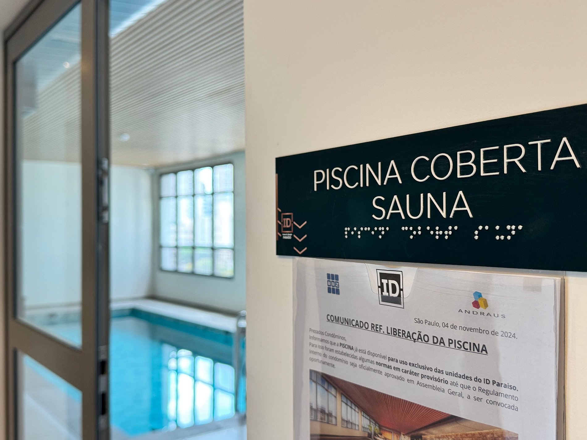 Acesso livre a todas as áreas comuns: lavanderia 24h, academia, piscina coberta, sauna, co-working, salão de beleza e barbearia. Algumas áreas podem ter restrições de uso e horários definidos pelo condomínio.