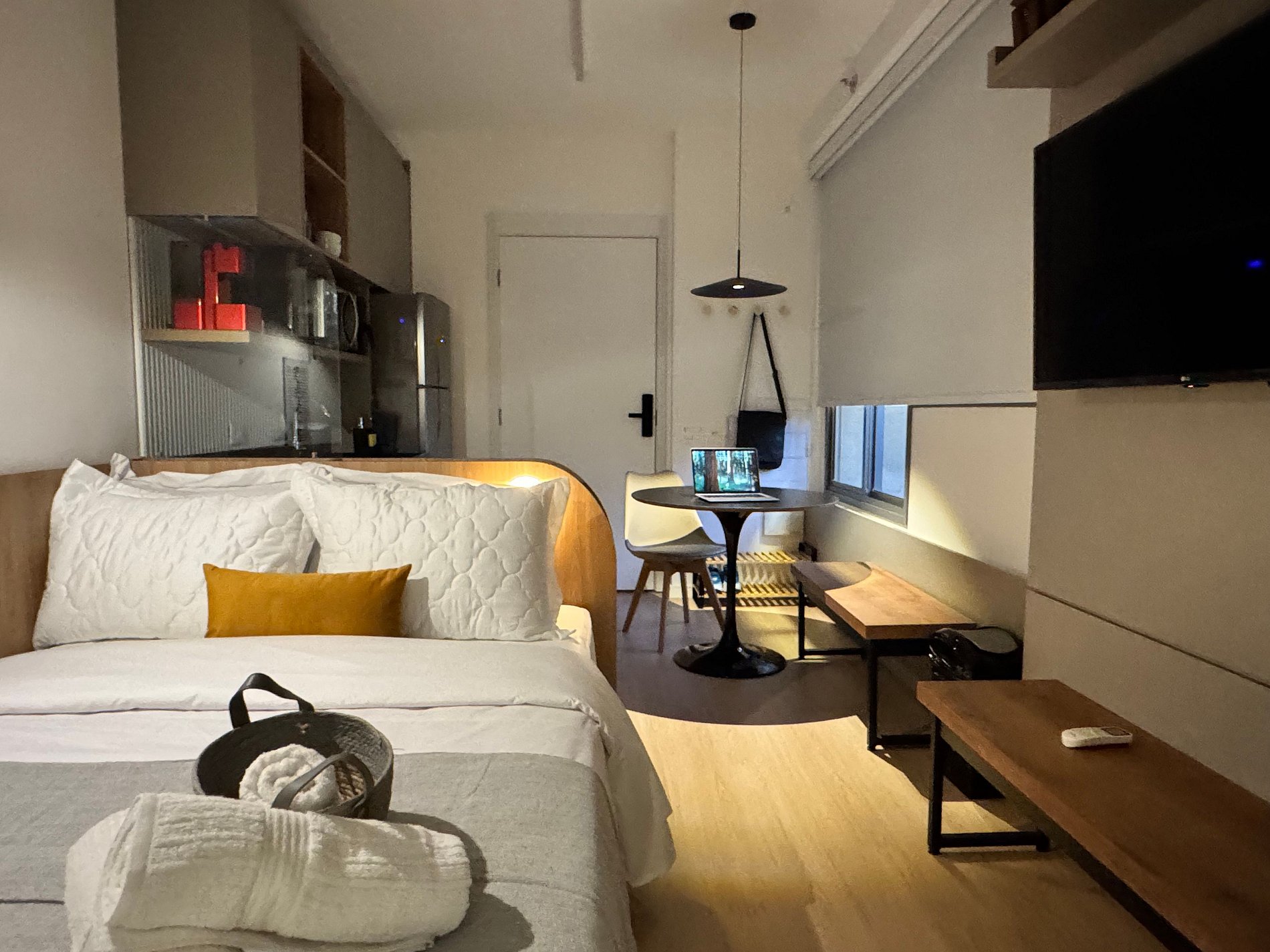 Studio novo com design moderno, super equipado e banheiro amplo e ventilado, a poucos metros do Metrô Paraíso. Conforto, praticidade e localização perfeita para negócios, lazer ou eventos em São Paulo.