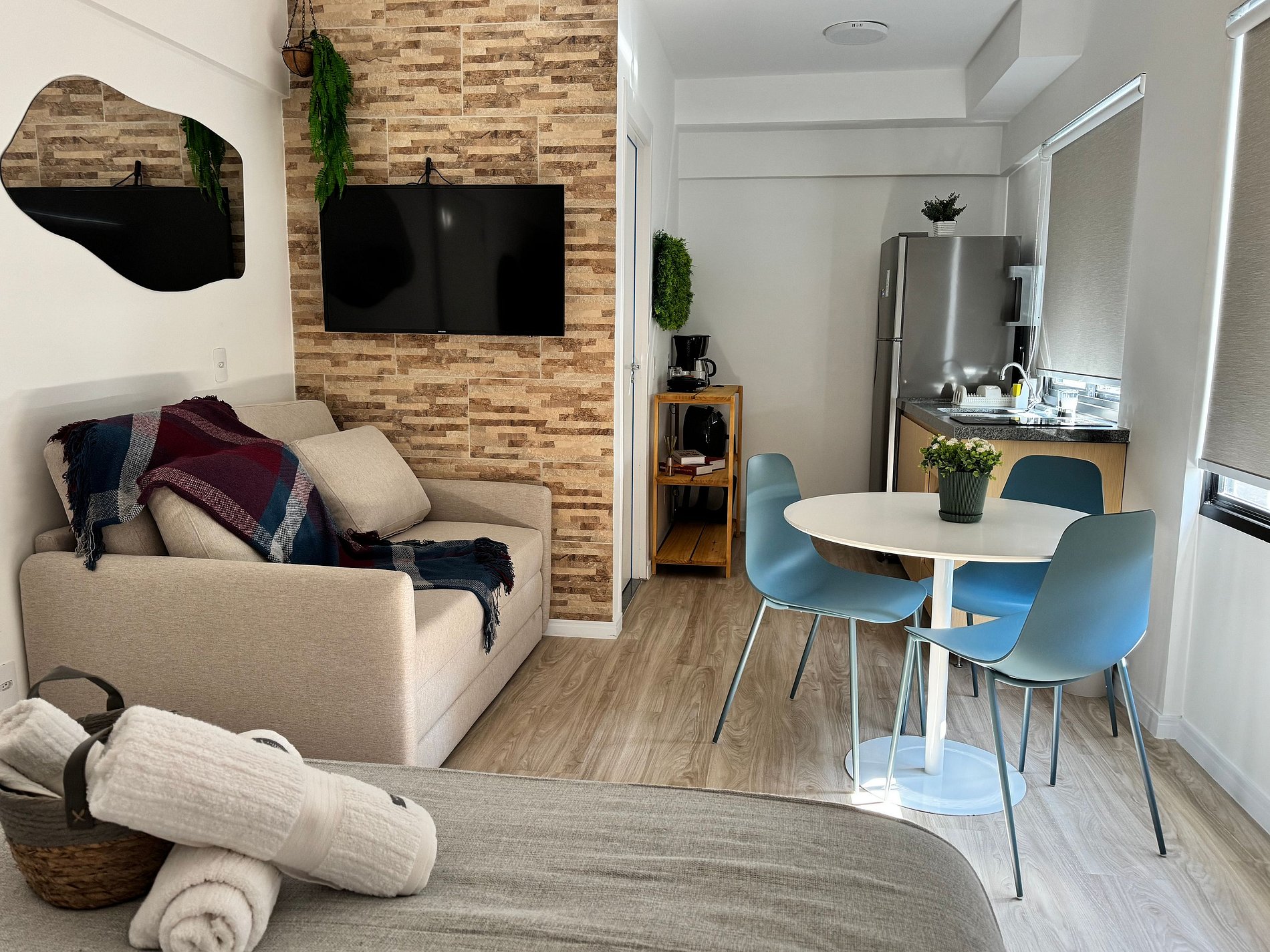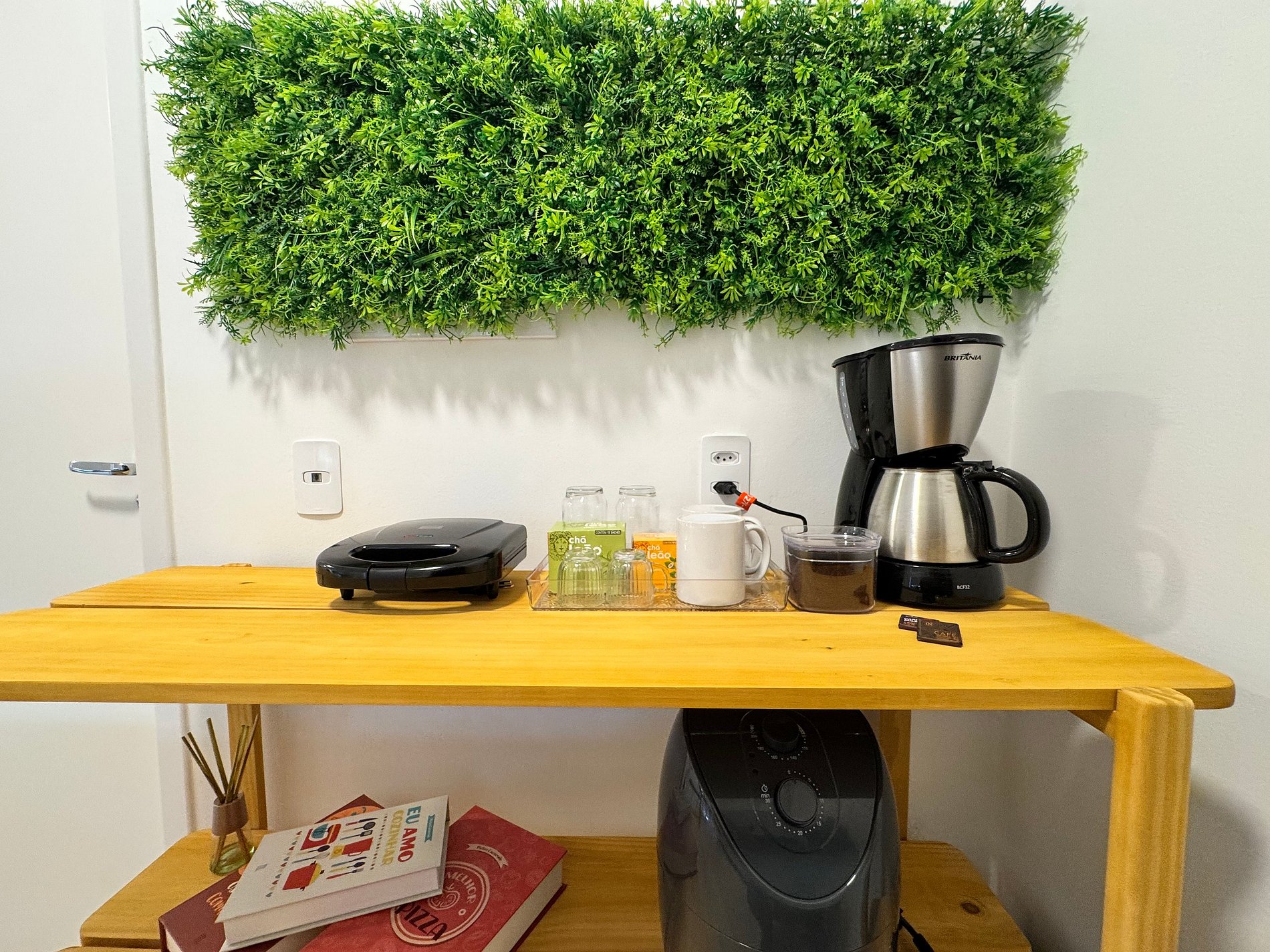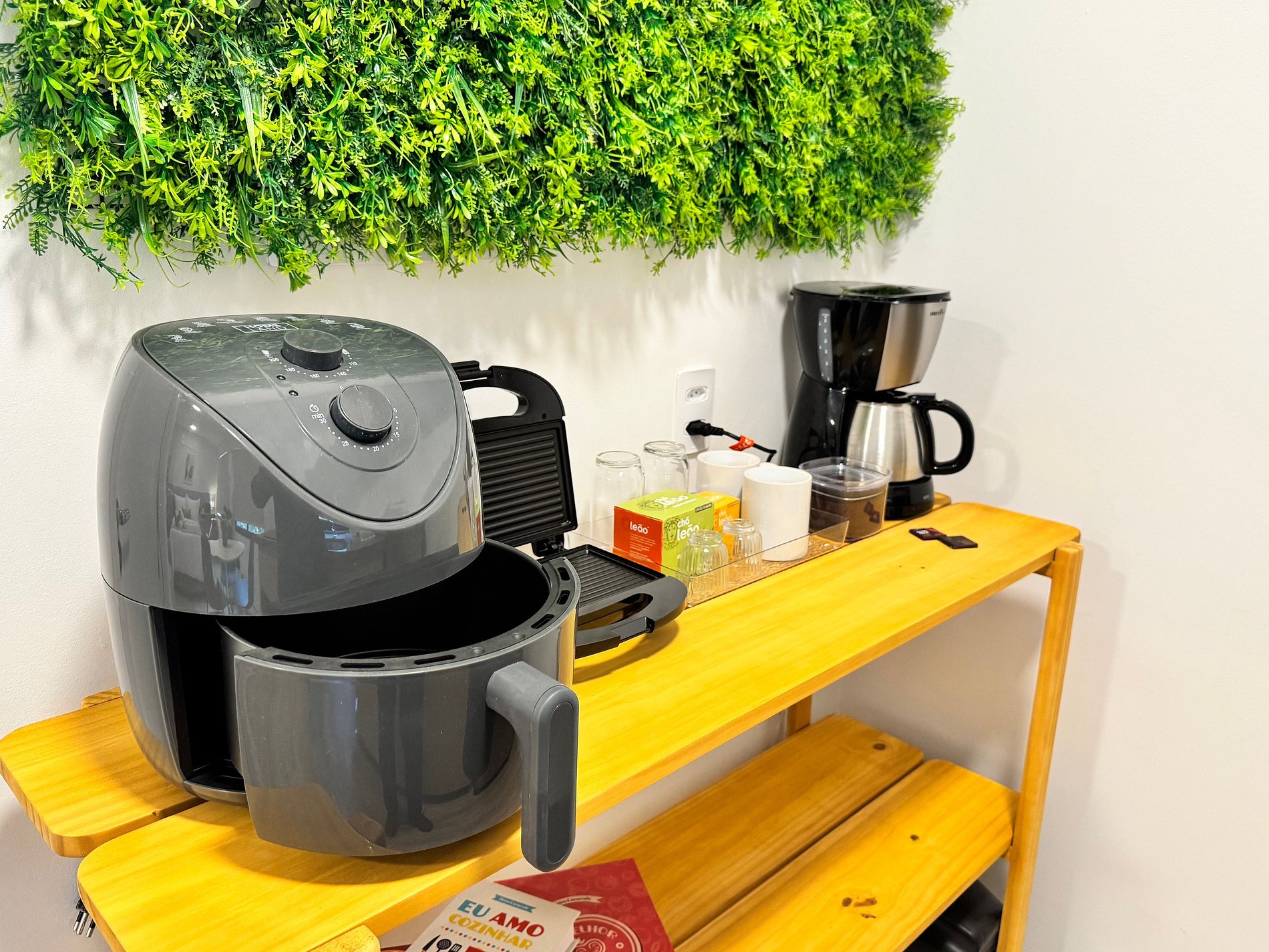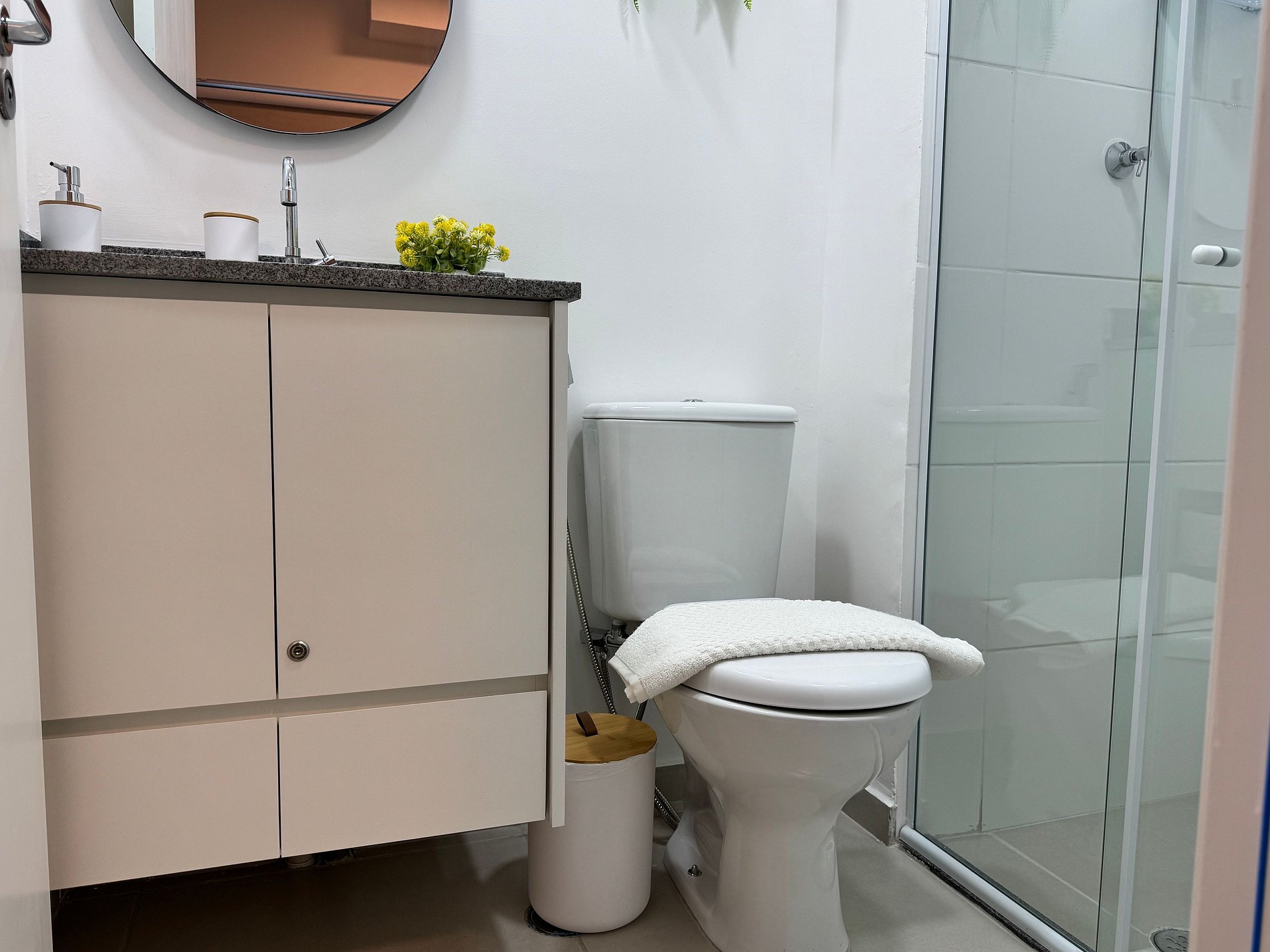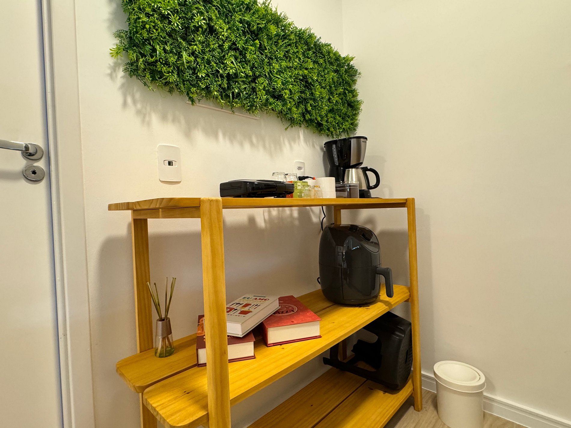 O Studio 33 combina design moderno, conforto e praticidade. Conta com cama casal aconchegante, sofá-cama, Smart TV, Wi-Fi veloz e mesa de trabalho. A cozinha é completa, com cooktop de indução, geladeira, micro-ondas, cafeteira e air fryer. O banheiro elegante tem ducha quente e secador. Iluminação agradável, decoração clean e self check-in por fechadura eletrônica garantem uma estadia impecável.