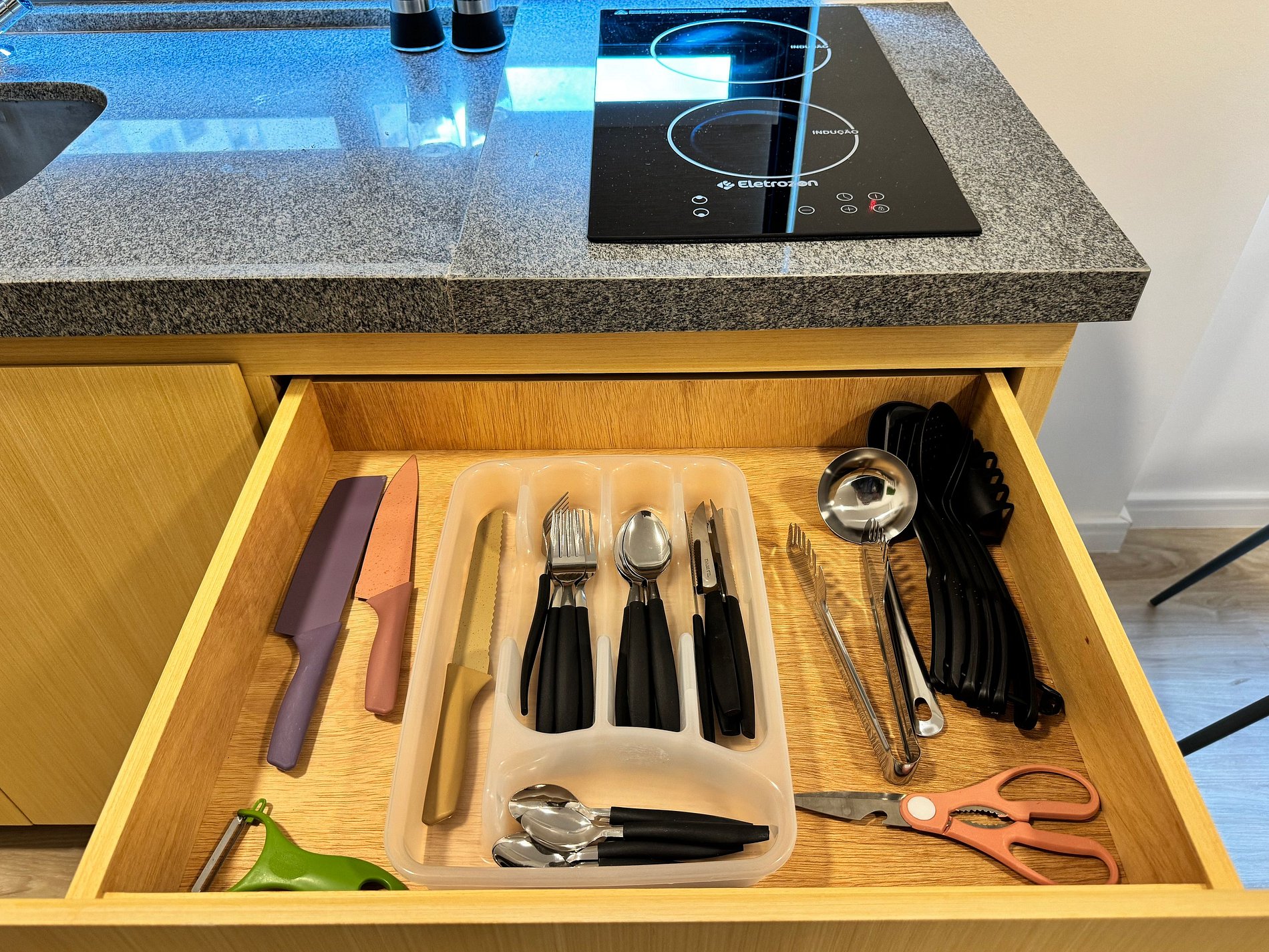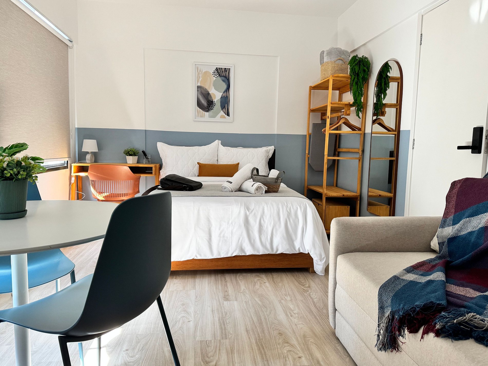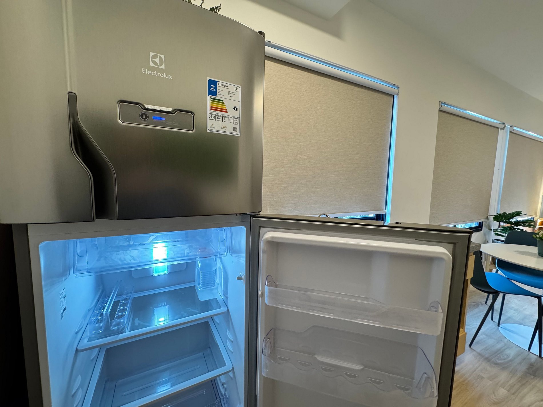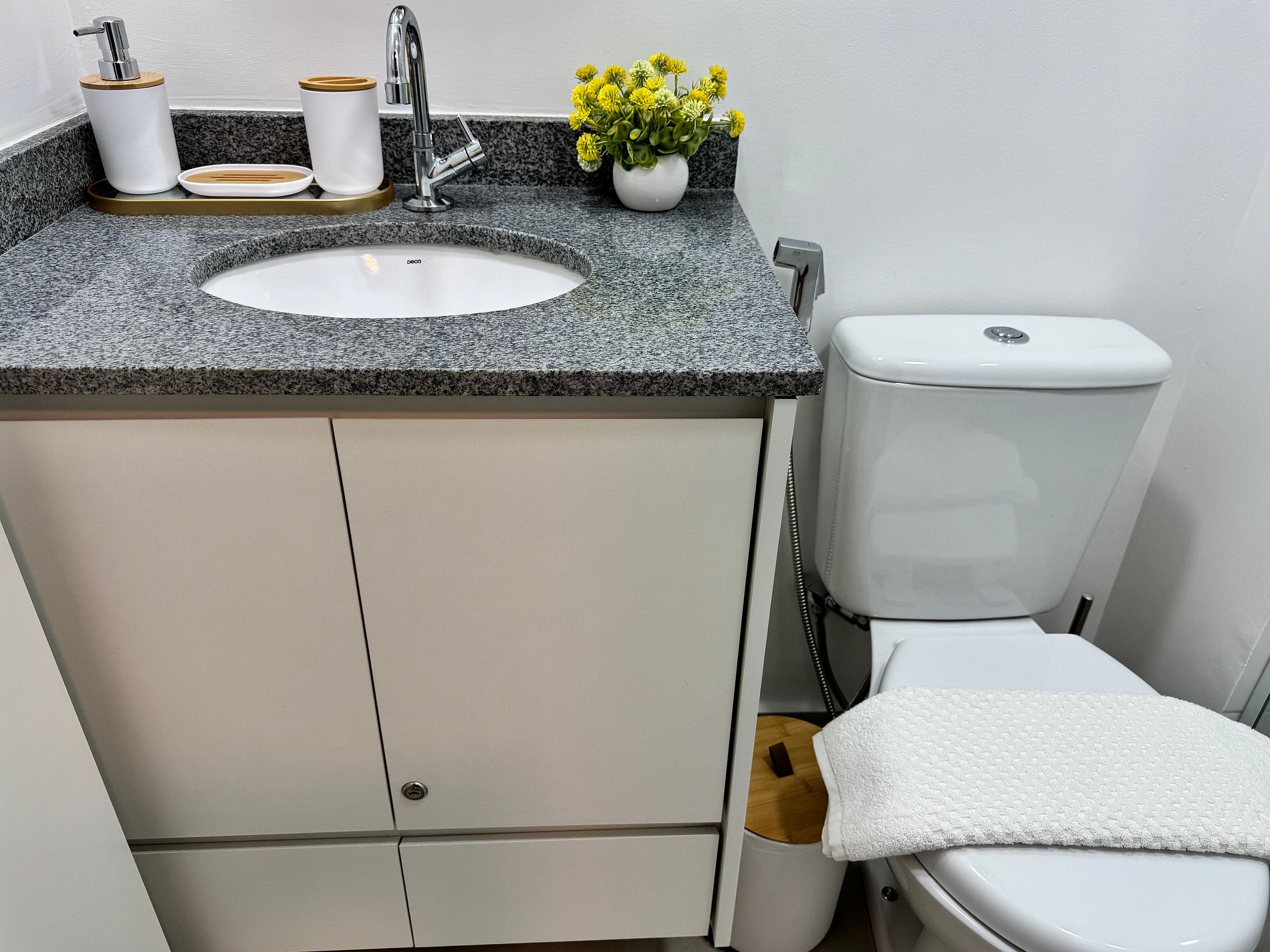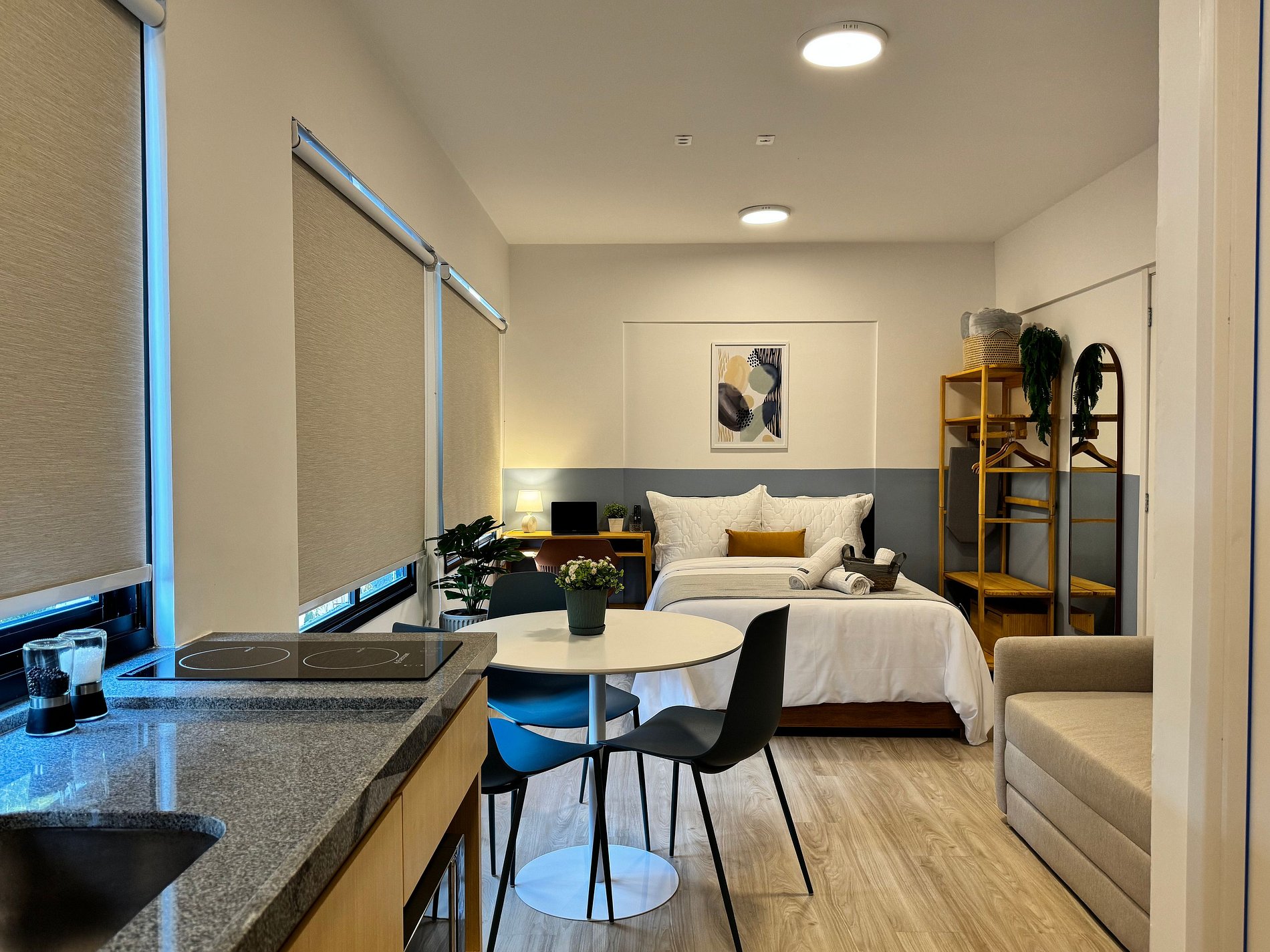 O Studio 33 combina design moderno, conforto e praticidade. Conta com cama casal aconchegante, sofá-cama, Smart TV, Wi-Fi veloz e mesa de trabalho. A cozinha é completa, com cooktop de indução, geladeira, micro-ondas, cafeteira e air fryer. O banheiro elegante tem ducha quente e secador. Iluminação agradável, decoração clean e self check-in por fechadura eletrônica garantem uma estadia impecável.