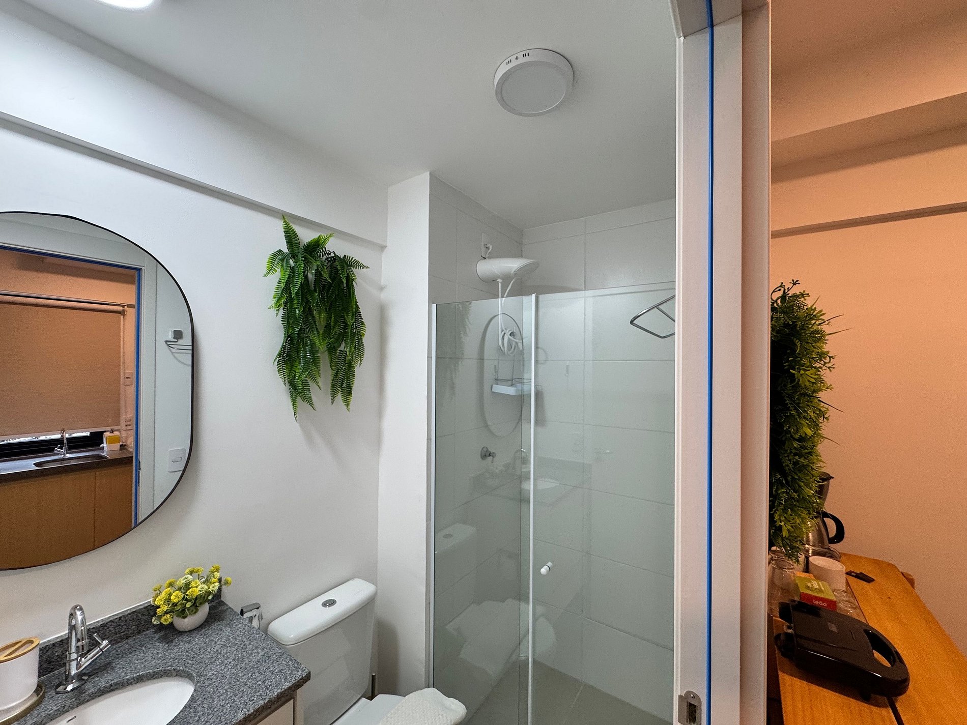 O Studio 33 foi preparado para que você tenha uma estadia prática, confortável e memorável. Você contará com enxoval completo, internet rápida, cozinha equipada e facilidades como lavanderia por aplicativo, bicicletário e áreas de lazer incríveis: rooftop com piscina, hidro e sauna, pub, coworking e academia.