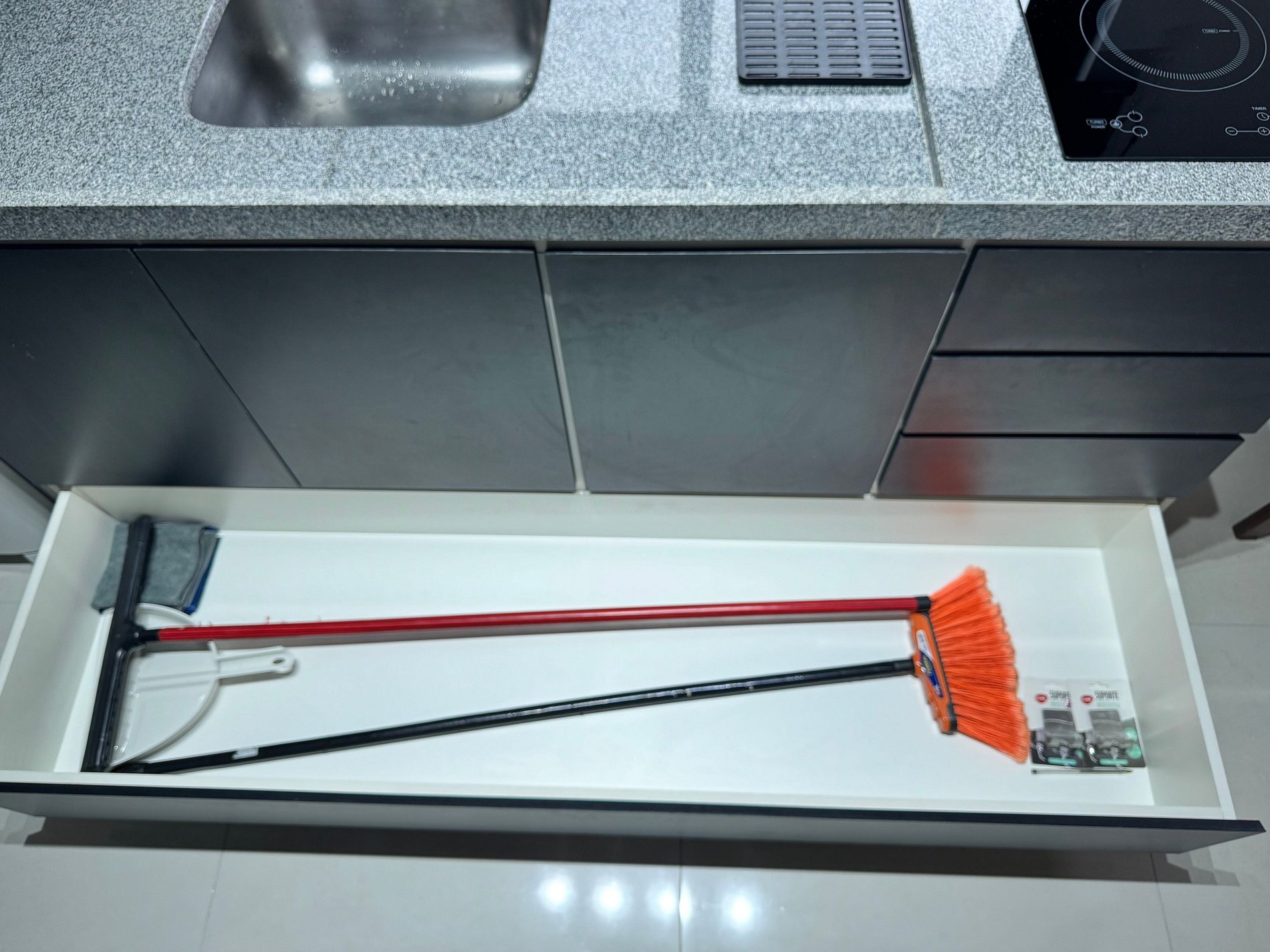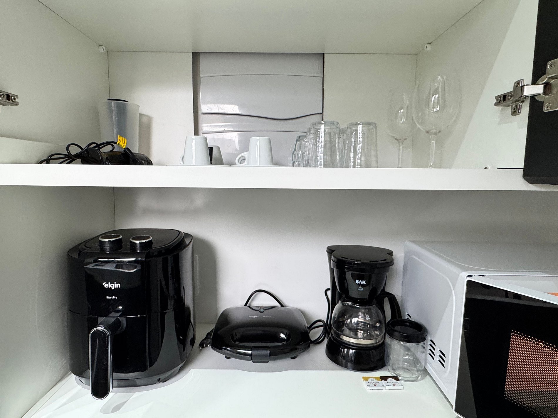Disponibilizamos um saco plástico verde na gaveta da cozinha para o descarte de materiais recicáveis (papel, plástico, metal e vidro).